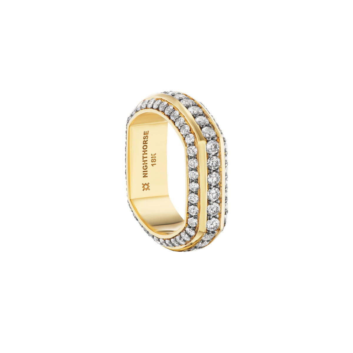 The Desperado ring is cast in either 18k gold or platinum, the bracelet is inlaid with diamonds on three sides, as was the first Desperado. This ring is wearable, elegant and it's unique shape keeps it in place comfortable without spinning on your finger.