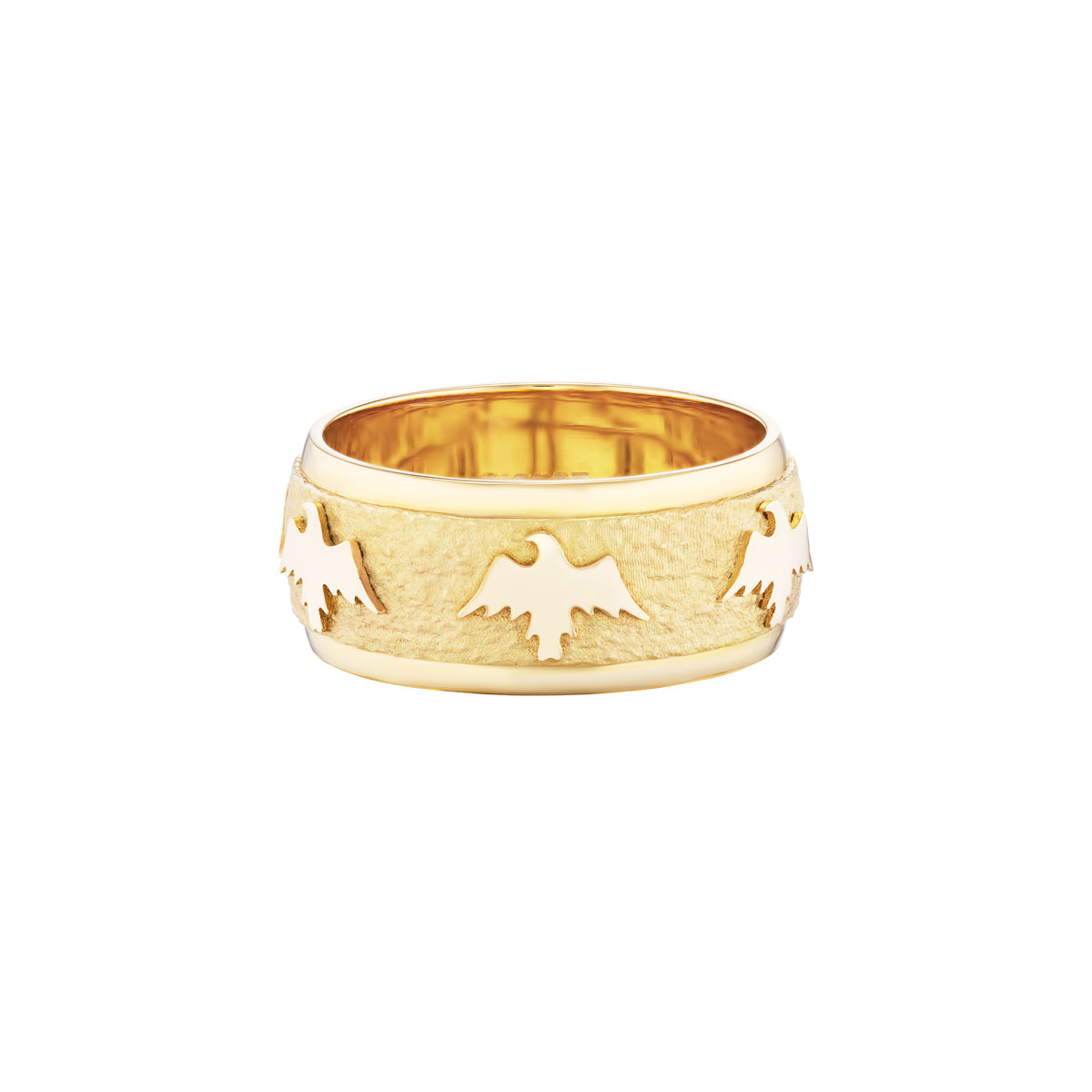 Influenced by his Native American traditions, Ben Nighthorse designed and created several instantly recognizable animal silhouettes. One of those recognizable silhouettes is the Eagle, long viewed as the master of the sky, symbolizing bravery and honor.