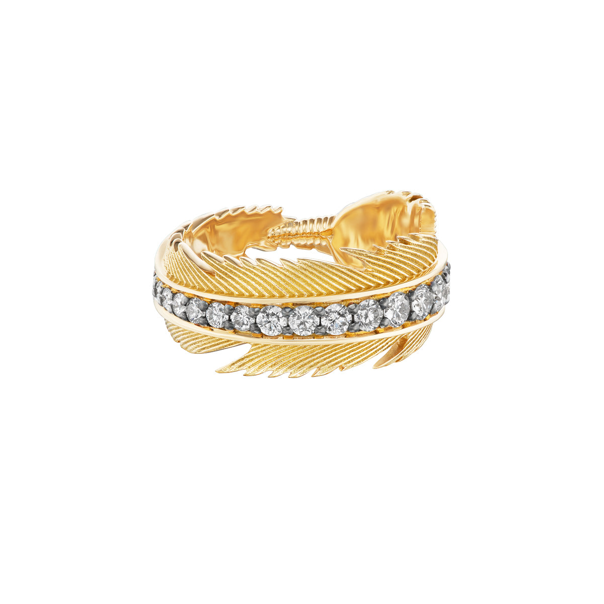 The Feather ring is set in 18k gold or platinum with diamonds, the ideal gift to celebrate that strong, courageous, honorable person. Pair with the Feather earrings or Feather Necklace for a statement set.