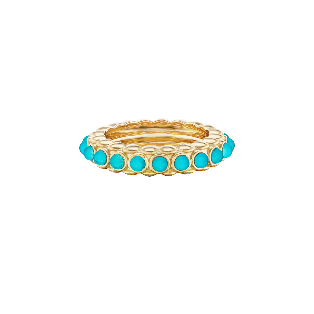 The Morning Drop Ring an example of that serene, yet striking dialog. In 18K gold or platinum, with turquoise or lapis cabachons set on the exterior, and a droplet design along the outer edge, this ring pairs beautifully with the Morning Drop Bracelet and the Morning Drop Earrings.
