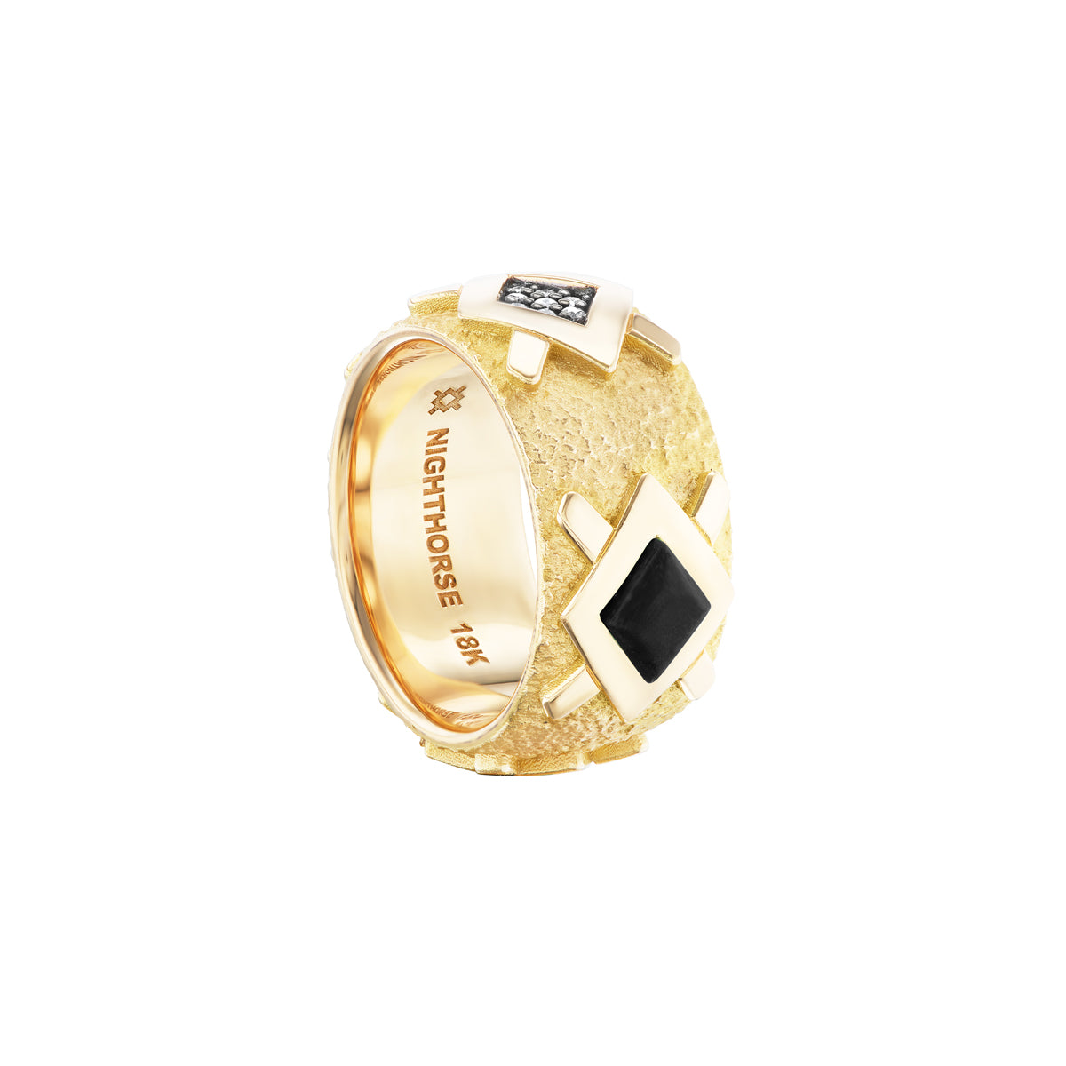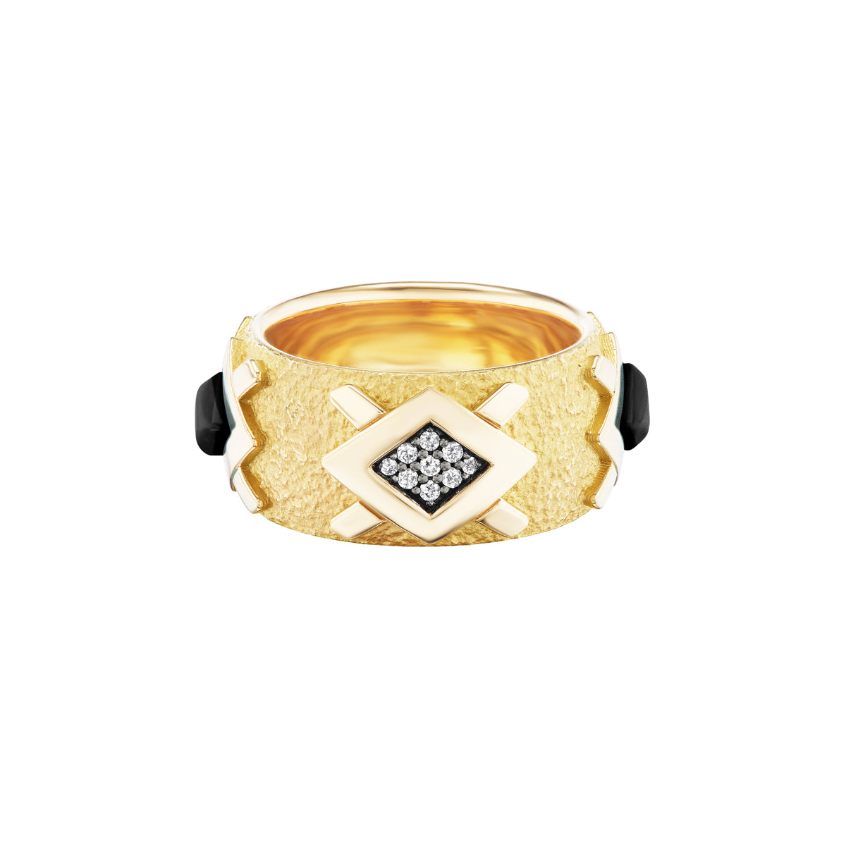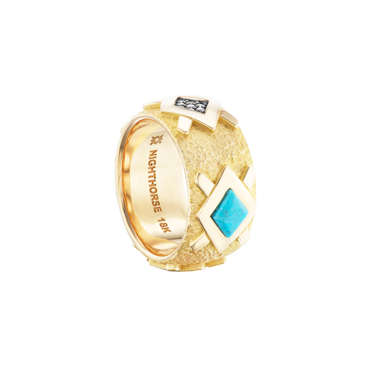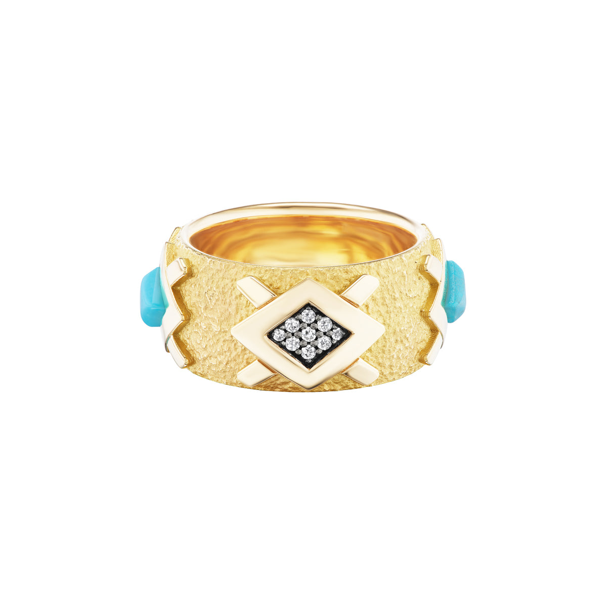 The Morning Star Ring carries that symbol as the focal point of its design. Set with either diamonds and turquoise or diamonds and black jade in 18K gold or platinum, this symbol of courage and strength of character is as meaningful now as it ever was. Pair it with the Morning Star Bracelet for a stunning set.
