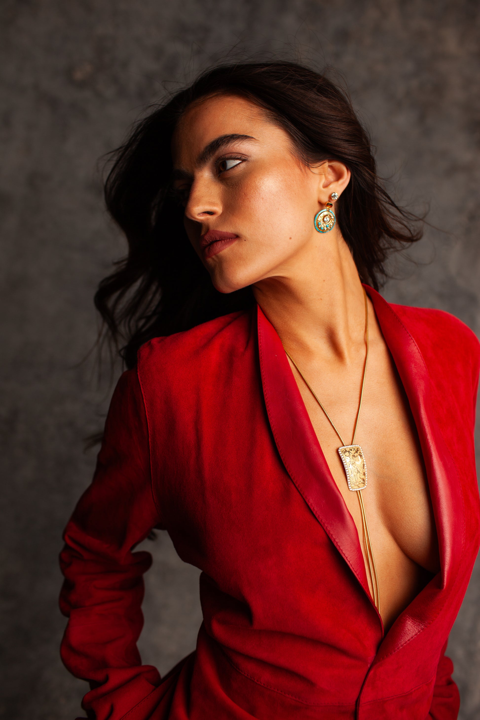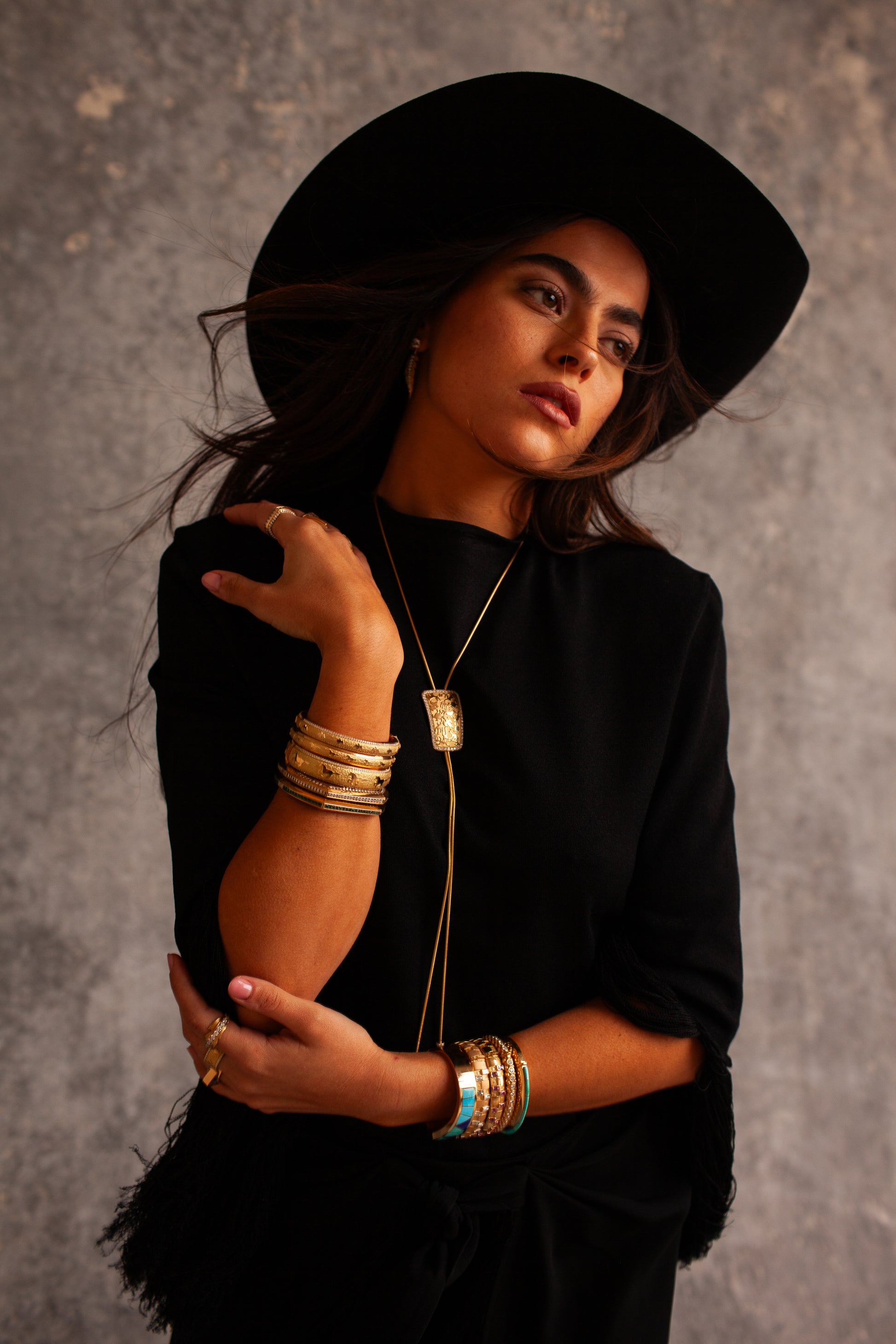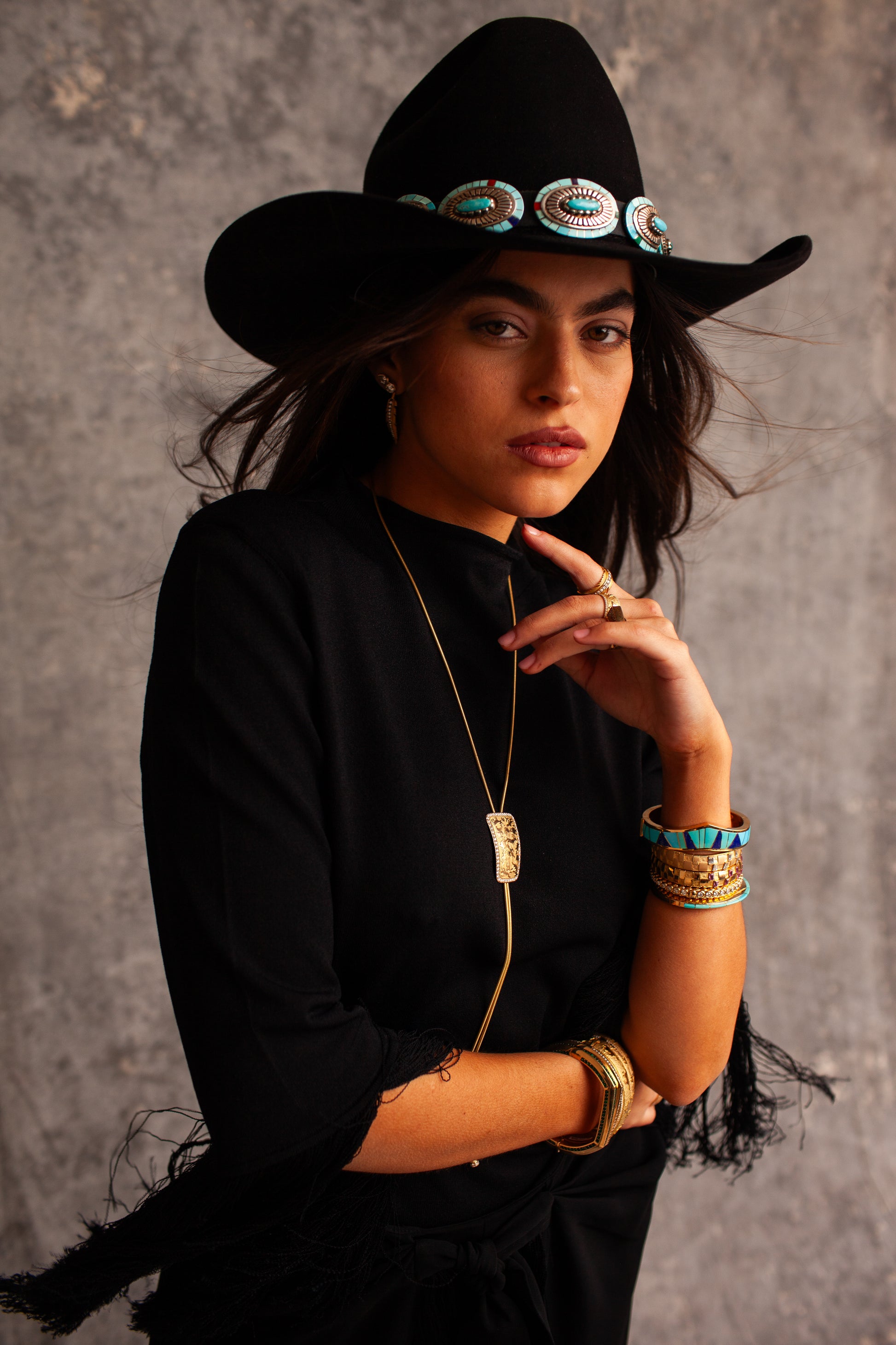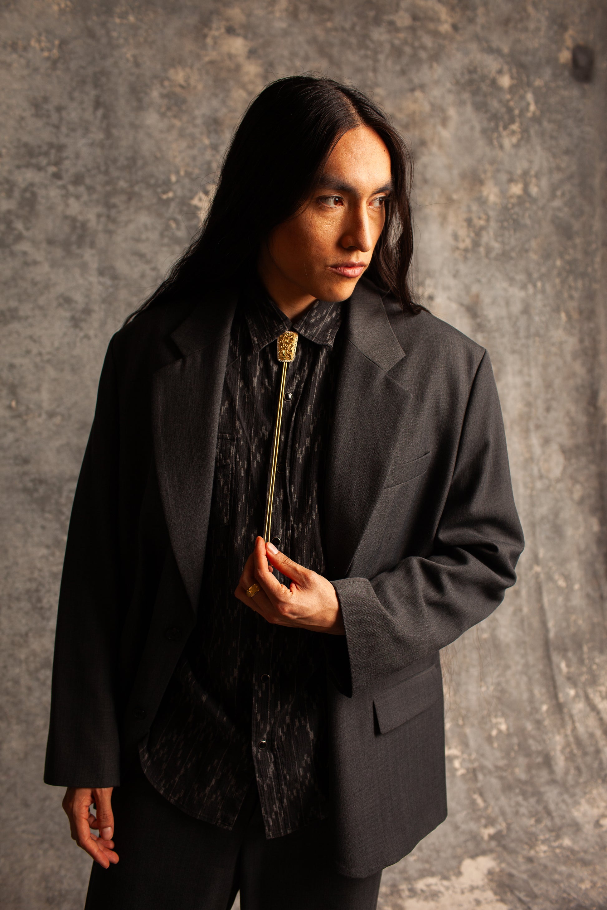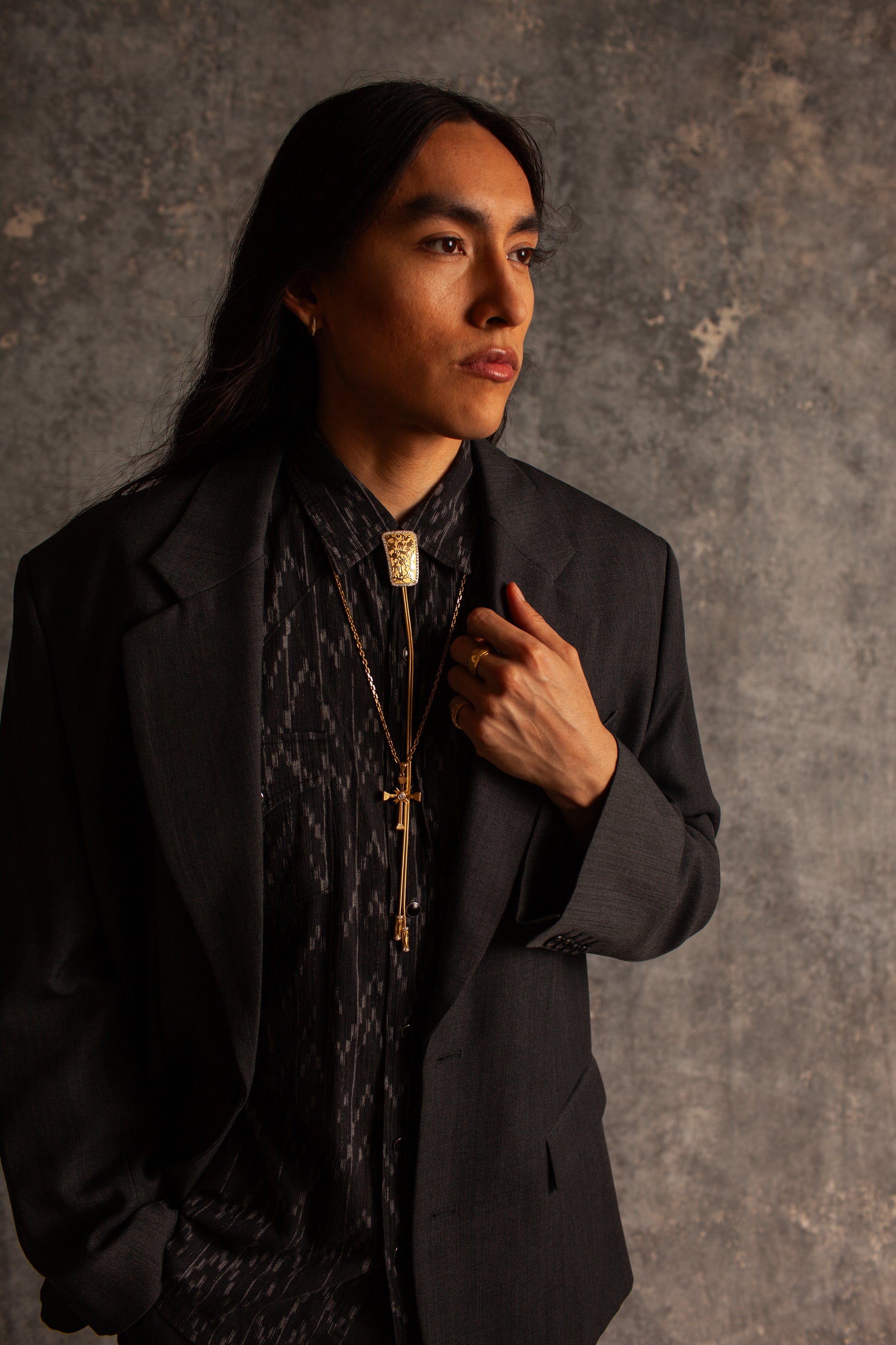 Inspired by the ancient petroglyphs of the Southwest, Ben Nighthorse’s Rock Art Wedge Bolo Tie is crafted in luxurious 18k gold or platinum and adorned with 2.6 total carats of natural diamonds. Featuring a 48" chain, this elegant accessory is designed for both men and women to wear with confidence and style.